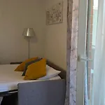 توفّر هذه الشقة الشرفة المفروشة بالصالون، بالإضافة إلى وسائل الراحة الحديثة مثل التلفزيون وتلفزيون بشاشة مسطحة مع قنوات فضائية. تتوفّر أسرّة مع وسائد ناعمة أو صلبة مضادة للحساسية تحت تصرف الضيوف. يشتمل الحمام على شطافة بيديه والمرحاض المنفصل والدوش، فضلاً عن مجفف الشعر والمناشف.